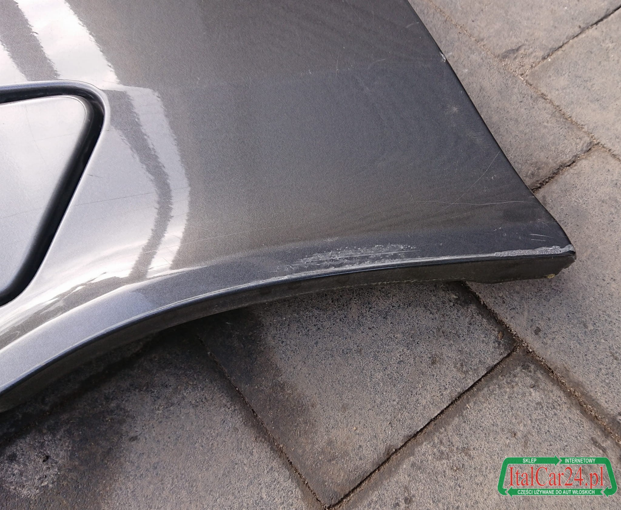 Sprowadzony z Włoch, oryginalny, w dobrym stanie, zdemontowany z bezwypadkowego samochodu, prosty i bez korozji, nie był nigdy klepany ani szpachlowany, na dolnym rancie lakier ma zdarty do blachy co widać na ostatnim zdjęciu.