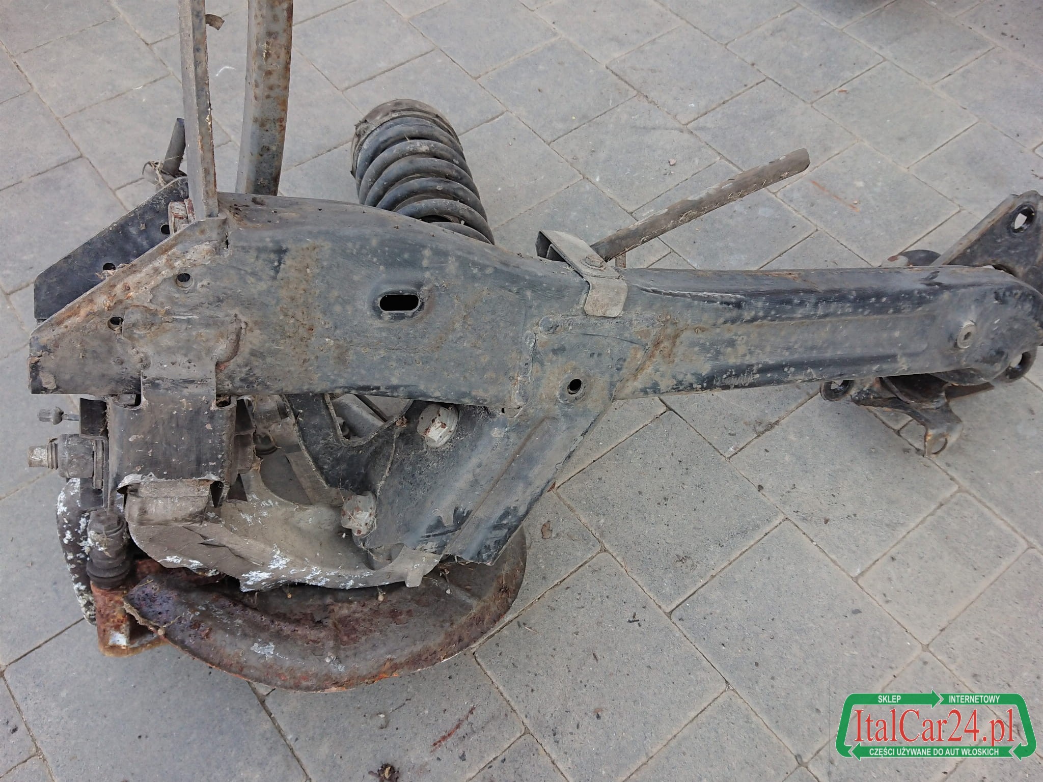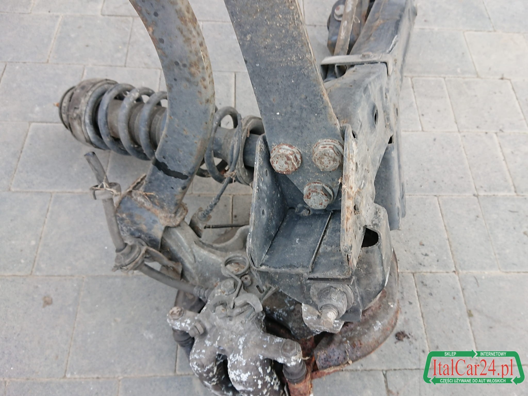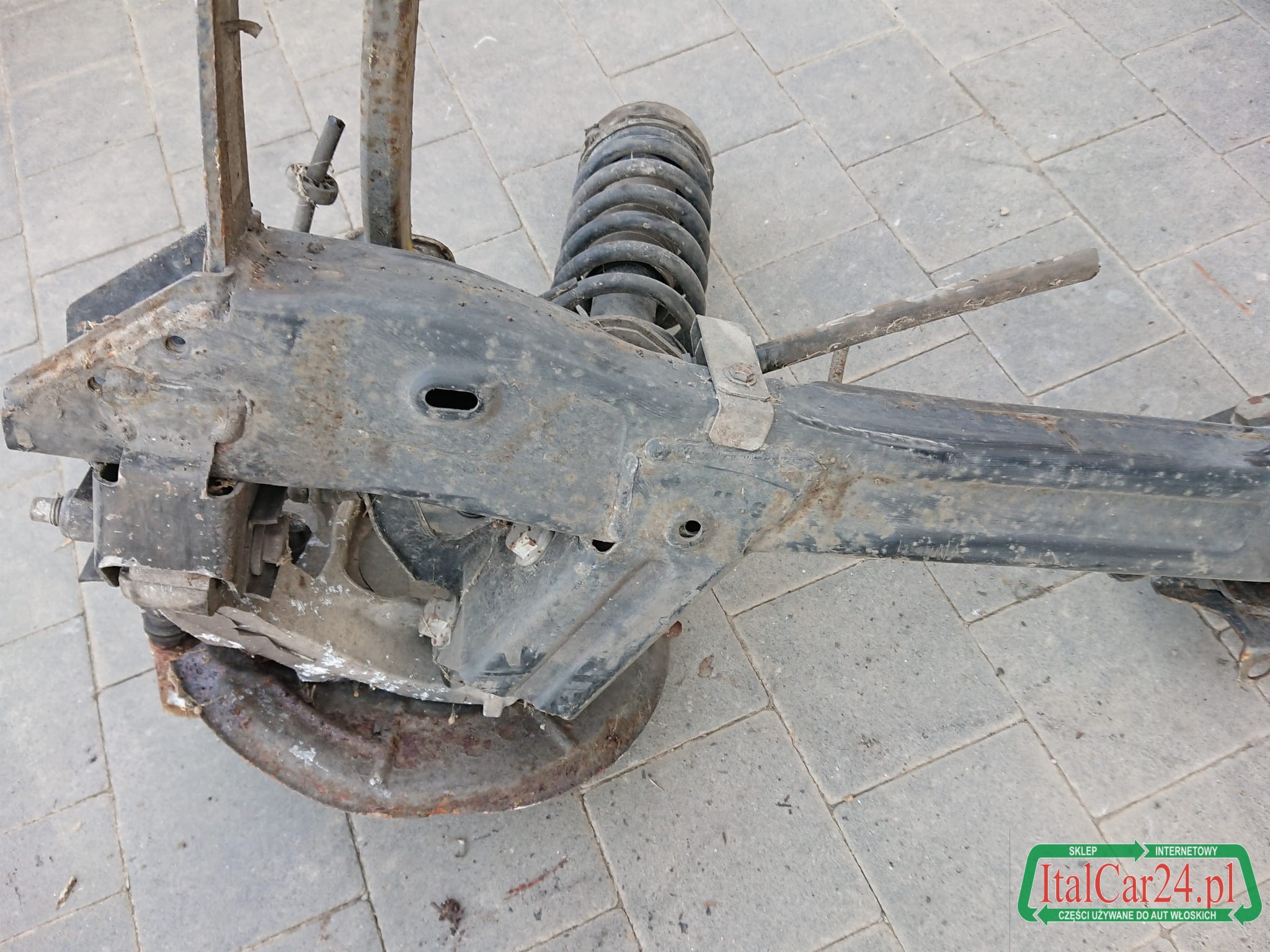 Sprowadzony z Włoch, używany, z demontażu kompletnego bezwypadkowego zawieszenia, jest w dobrym stanie technicznym, ma niewielkie oznaki powierzchniowej korozji.
